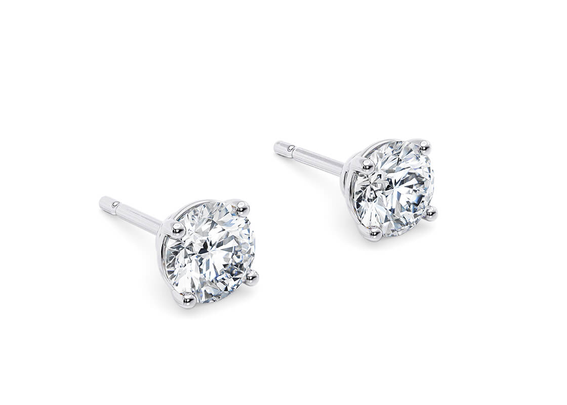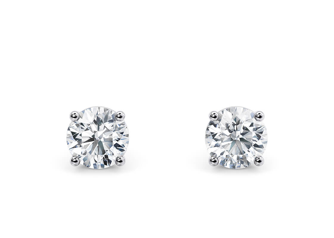 Simply stunning, these round brilliant cut stud earrings offer you timeless elegance, a truly classic pair of earrings. Matches the diamond pendant perfectly. Diamond Color D-E Clarity VVS. Please call for prices in Platinum